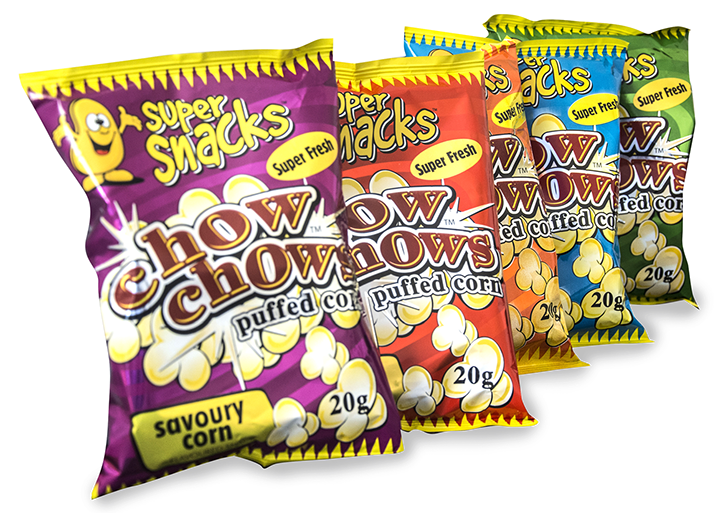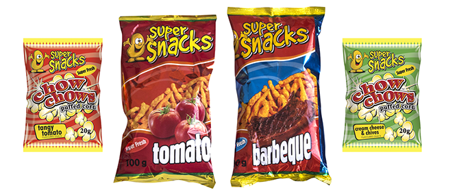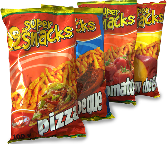 Super Snack represents our corn snacks businesses which has grown beyond our wildest expectations. We started of with one plant in 1998 and now have 4 plants in South Africa. The popularity of Super Snacks comes from our superior product taste and texture. We came up with our own recipes for 􀈠lavouring which have been received and embraced by all our clients.